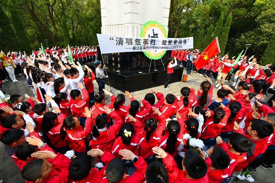 2023年4月3日,重庆市綦江区南州小学在烈士陵园开展“清明祭英烈 凝聚爱国情”清明祭扫主题教育活动。新华网发(重庆市綦江区融媒体中心 王京华 摄)