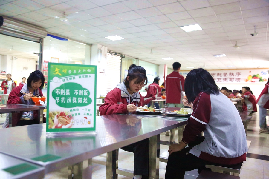 綦江区南州中学食堂杜绝浪费的标语随处可见(资料图)。新华网发(重庆市綦江区融媒体中心 张梦寒 摄)