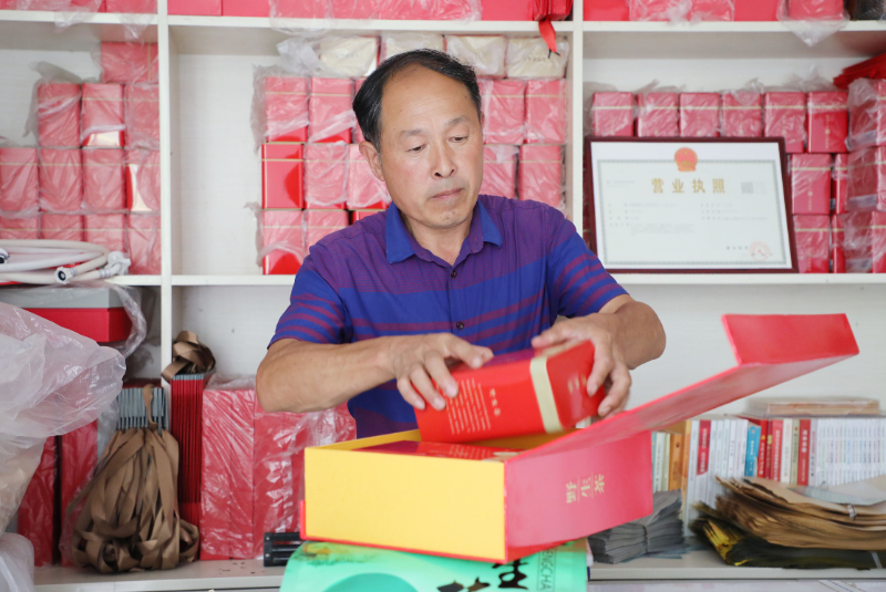 2024年9月28日,安徽省六安市金寨县花石乡大湾村村民汪达海在为客户快递优质茶叶。新华网发 (田凯平 摄)