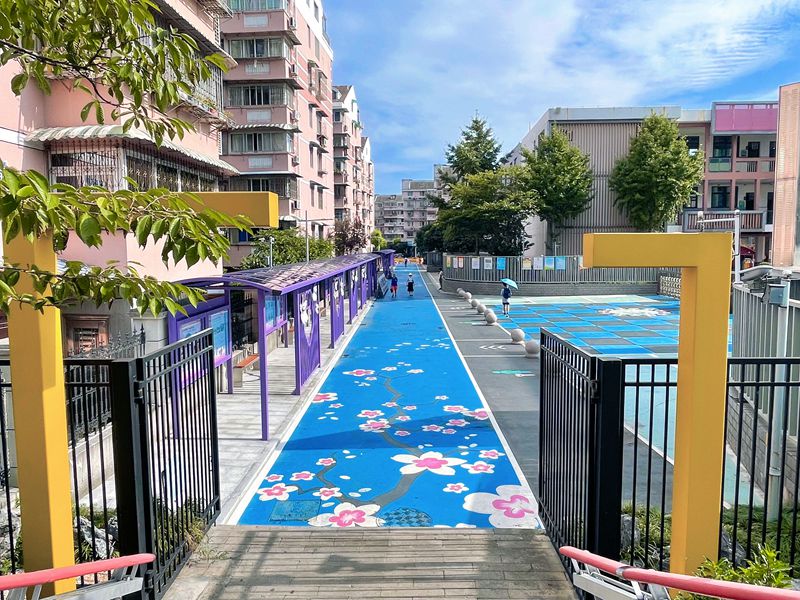 2024年8月28日,浙江省宁波市四眼碶小学樱花校区“最美上学路”改建完工。(宁波市文明办供图)