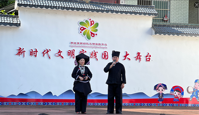 资料图:2024年那坡县“移风易俗树新风·同心治善美边关”文艺下乡展演——移风易俗山歌对唱。新华网发(百色市文明办供图)