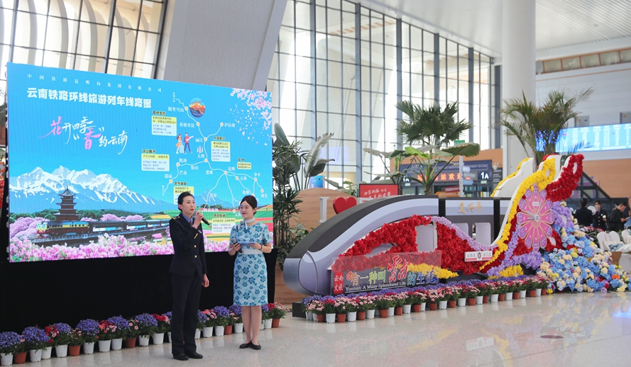 昆明南站以花会客 邀您“香”约云南